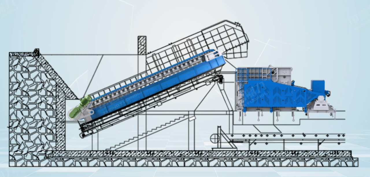 從工藝設計角度來說,傳統旋回破進料模式無喂料裝置,對于較大物料的滑落較為不利,對原料的堵塞需要更多的應對時間。而臥式旋回破與振動給料機或板喂機搭配,可以減少此類問題的發生以及實現快速處理。